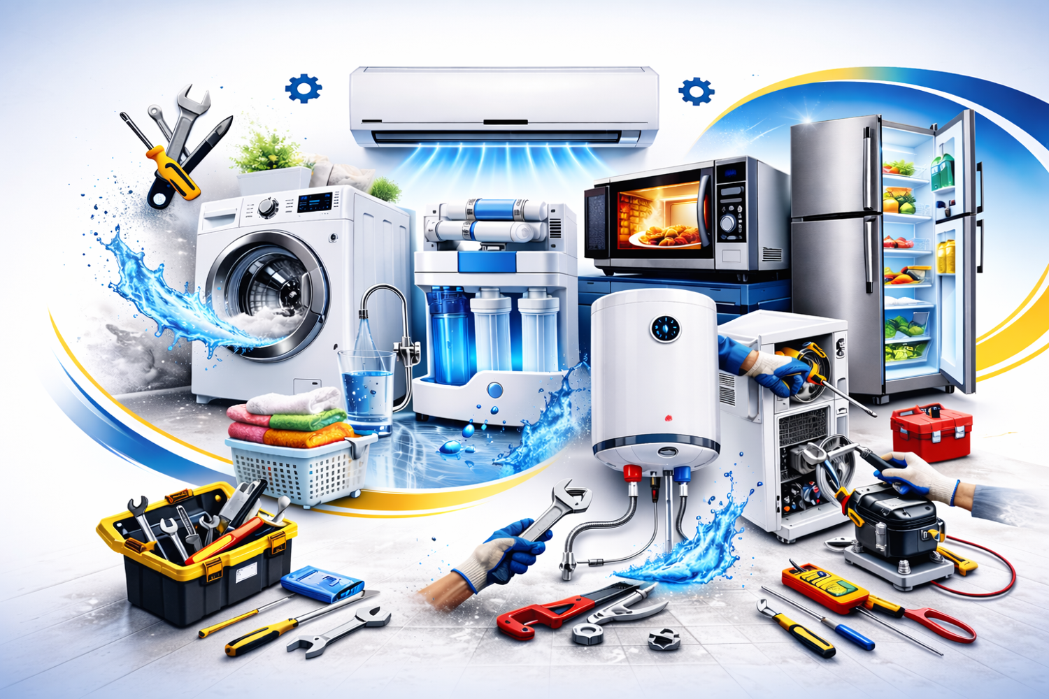 Expert repair, service, and installation solutions for air conditioners, washing machines, RO water purifiers, microwaves, geysers, and refrigerators.